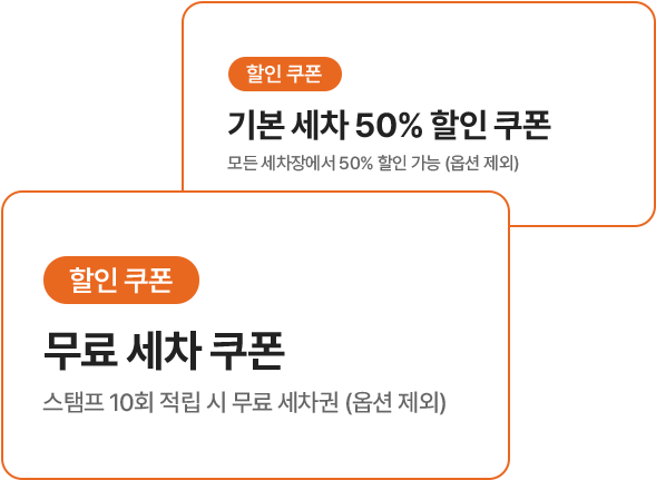 10개 스탬프 모으면 세차 할인 쿠폰 제공!