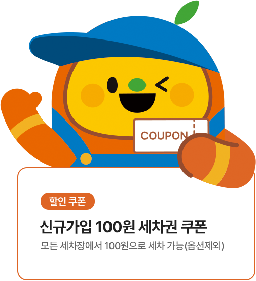 가입만 해도 첫 세차는 단돈 100원! 웰컴 쿠폰 제공